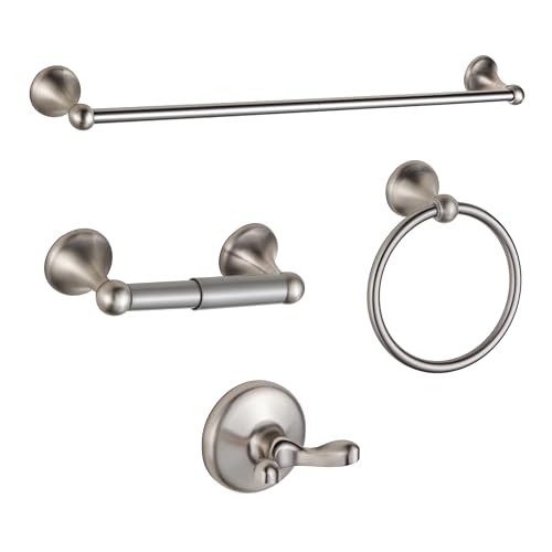 Brushed Nickel Bathroom Hardware Set 4 Pieces,Bathroom Accessories Set Stainless Steel Wall Mounted, Hand Towel Bar, Towel Ring, Robe Towel Hooks,Toilet Paper Holder,Towel Bar Set, 23.6 Inch…