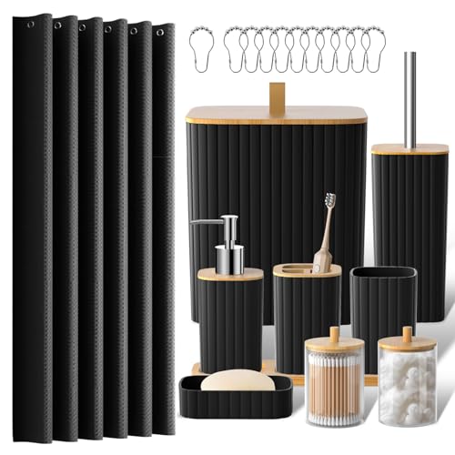- Comprehensive 20-piece set includes shower curtain, toilet brush, trash can, and soap dispenser for a unified look.