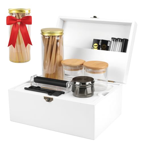 Coozyupper Large Bamboo Storage Box with Removable Tray Kit - Decorative Box Set, Glass Jars, and Accessories Wooden Storage Kit and Accessories Tool.Birthday Gifts.