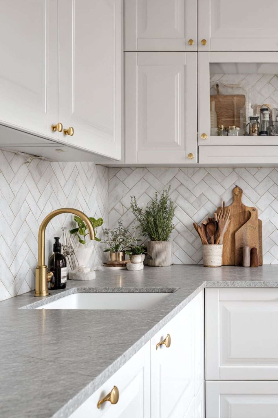- Match hardware finish to faucets and light fixtures