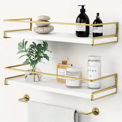 Floating shelves, metal racks, and glass shelves complement modern and traditional bathrooms. Choose styles that match your overall bathroom theme and color palette.