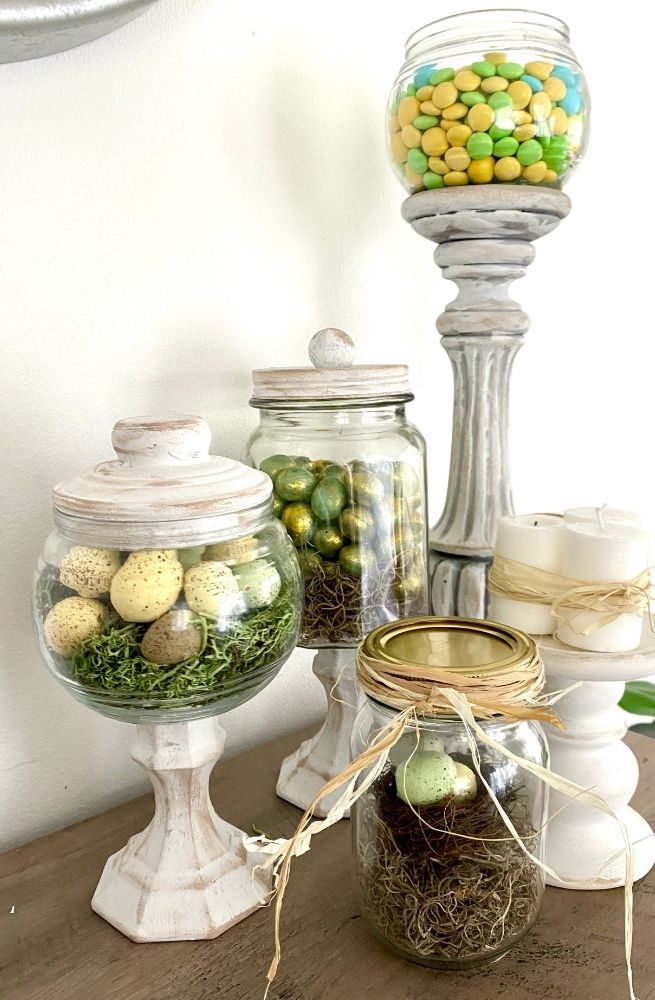- Choose jars with aged or distressed finishes