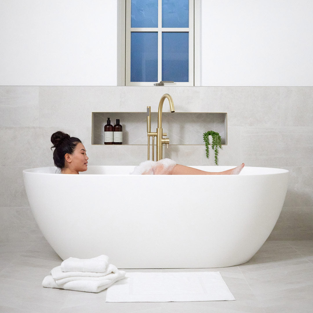 Choose thick, absorbent fabrics that feel gentle on your skin for a true spa feeling.