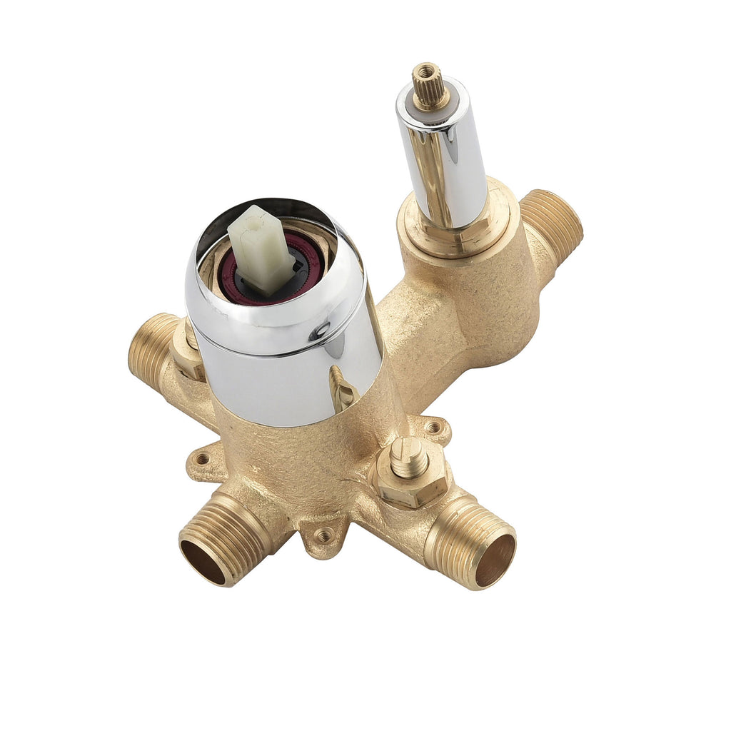 A pressure balancing shower valve keeps water temperature steady. It stops sudden hot or cold water changes.